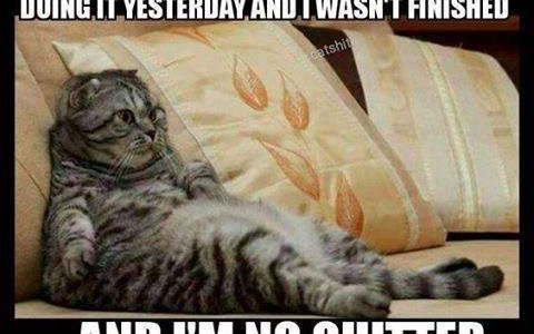(just starting to figure out how to blog and add a picture- noticed that the quote appears to be cut off. It says, “Today I am doing nothing, because I started doing it yesterday and I wasn’t finished… and I’m no quitter)